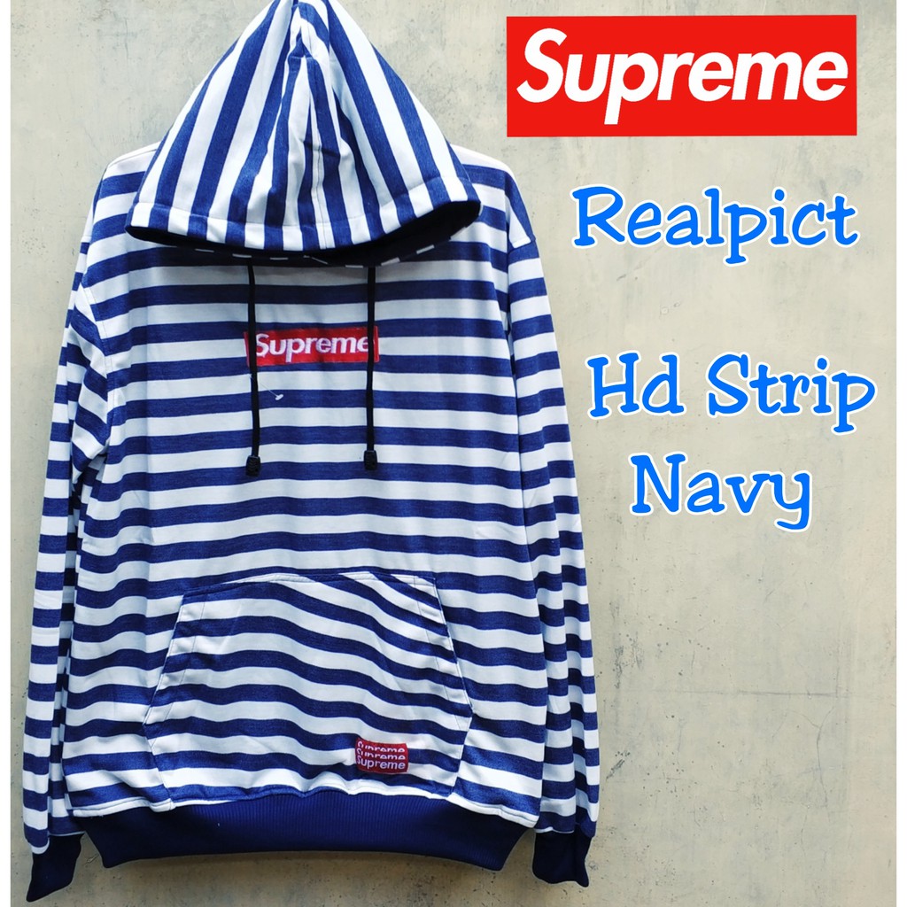Jaket Hoodie Supreme Strip Navy White Shopee Indonesia